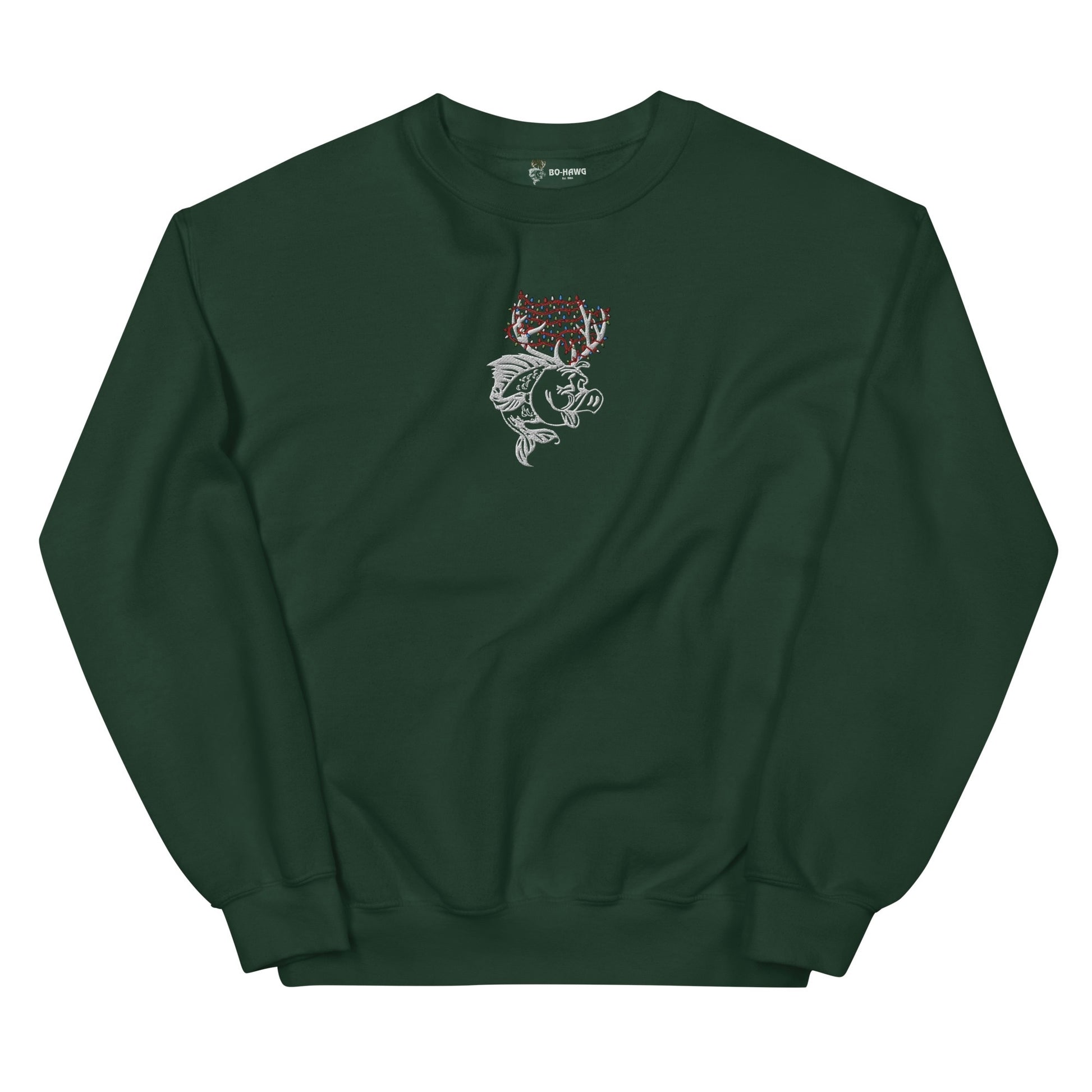 My friend Katherine is crazy talented at stitching, so this one is a bit inspired by her. I think this is fancy, but still ridiculous. Every antler, light, and grin is stitched onto the Pig Fish because some things deserve a little extra love, like my Pop's rocking that old women's mock turtleneck at our Christmas party. I wanted a tacky Pig Fish that didn't have the Bo-Hawg® name so that you'd REALLY have a conversation starter on your hands.